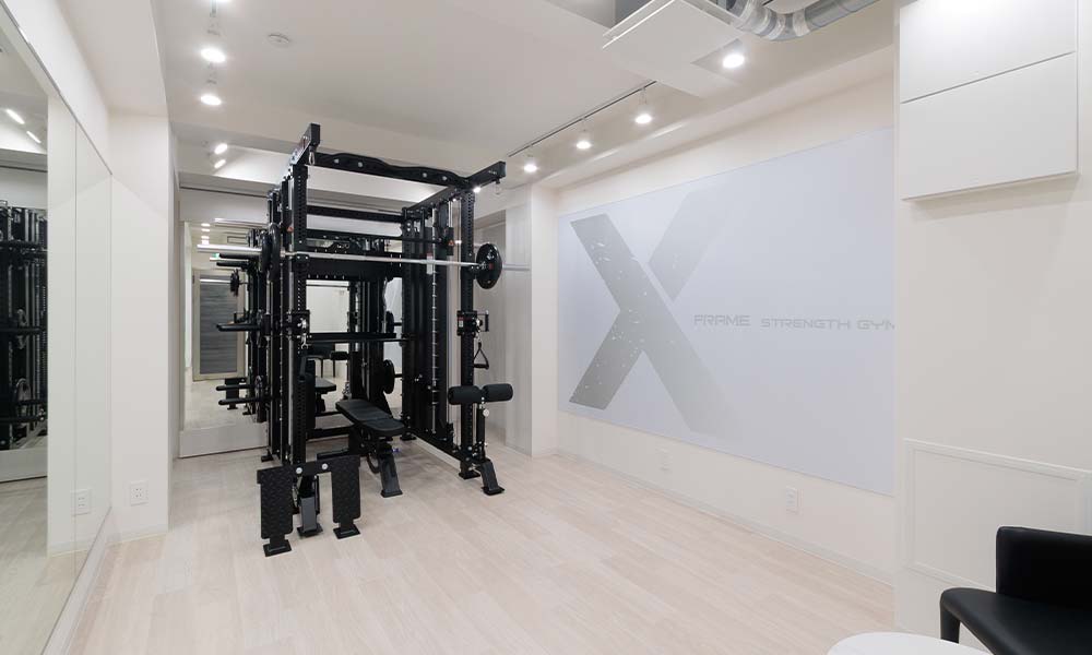 重厚な黒に包まれた個室は、日常の喧騒から切り離された特別な隠れ家のような空間。集中力が高まり、一つひとつのトレーニングが上質な自己研鑽の時間へと昇華します。